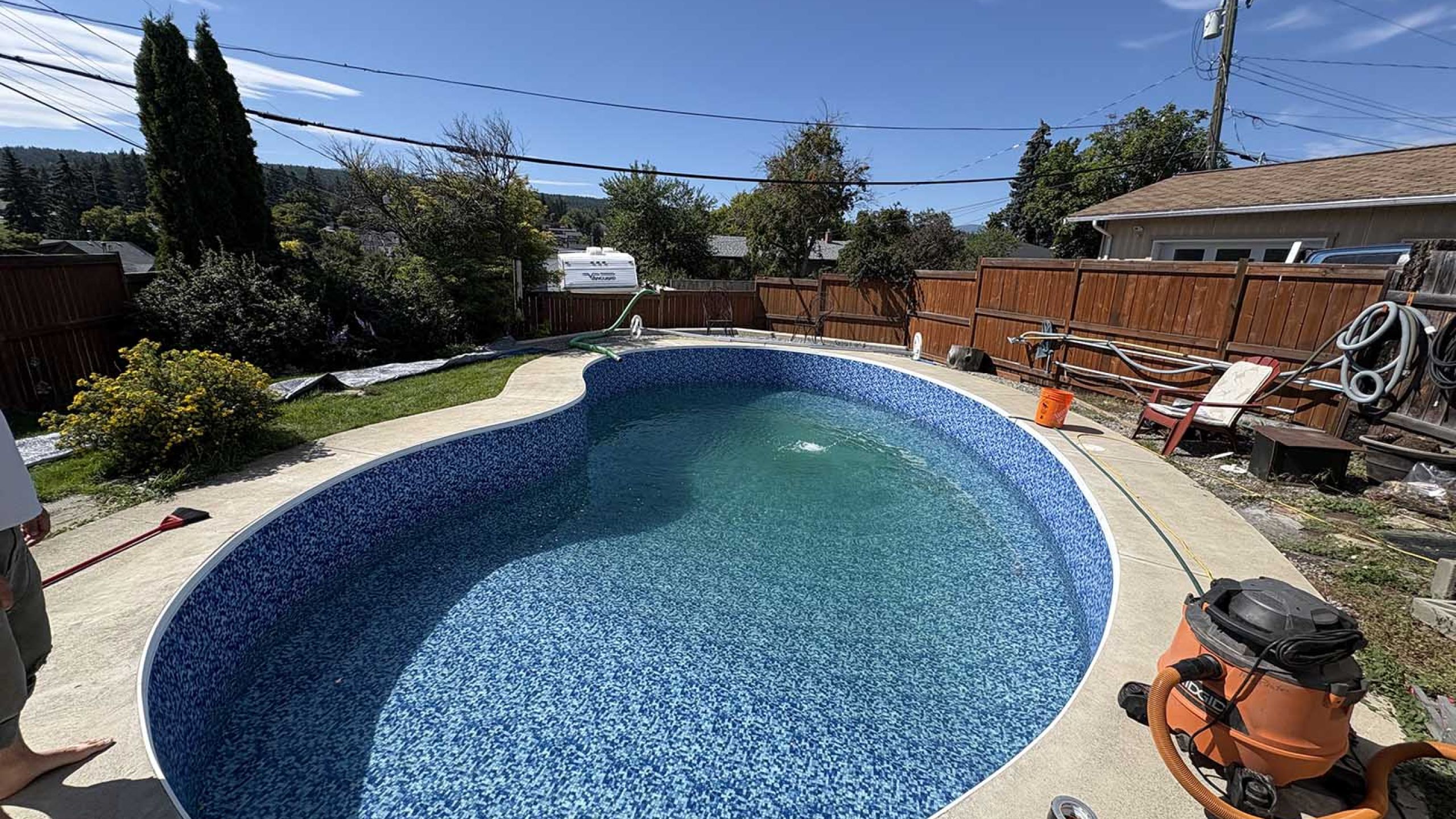 The client chose a lively pattern with multiple shades, making the old pool look brand new again. We used our digital “MEASURE” system from Latham to correctly measure and fit a Custom-fit, durable pool liner replacement with a beautiful design from Latham Pools.